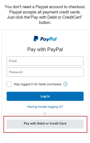- Just select "Paypal" and click the "Pay with Debit or Creditcard" button.